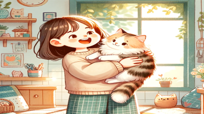 ある日の午後、小さなアパートの一室で、猫の影丸と元気いっぱいの子供が楽しく遊んでいた。影丸はふわふわの毛並みと大きな瞳で、子供たちの心を魅了していた。彼らはお互いに追いかけっこをして、時にはおもちゃでじゃれ合い、部屋中に笑い声が響き渡っていた。 その小さな部屋には、暖かな陽の光が差し込み、幸せな雰囲気が漂っていた。影丸は子供たちの愛情に包まれて、幸せそうに鳴き声をあげる。彼の尻尾は嬉しさでふりふりと揺れ、その姿はまるで家族の一員のように見えた。 子供たちは影丸を抱きしめ、彼の柔らかい毛に顔を埋めて幸せそうに微笑んだ。影丸もまた、子供たちの優しい愛情に応えるように、尽くすように彼らに寄り添っていた。その日の楽しい遊びの後、彼らは一緒に眠りにつき、影丸は子供たちの夢の中にも微笑みを運んでいった。